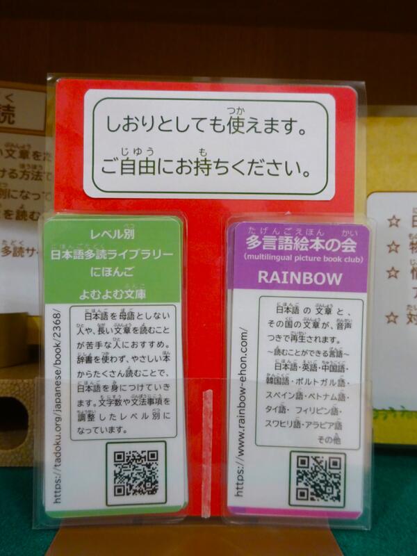 QRコード付のしおりもおいてあります。