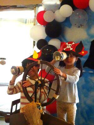 昨日の海賊帽子・今日の工作の望遠鏡で