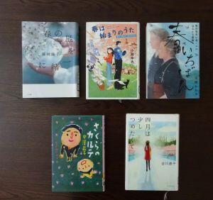 カウンター横の紹介本も、春らしい本を