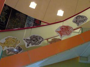 中央らせん階段には、昇り魚🐟がいます。